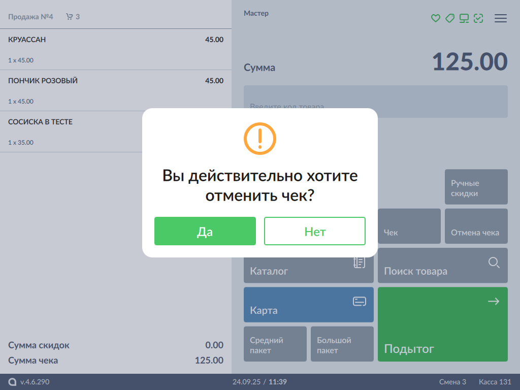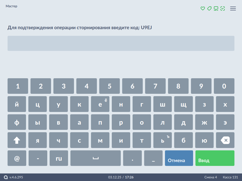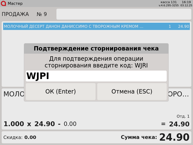 599 - Сторнирование товара. Сторнирование всех позиций чека с вводом кода подтверждения.png