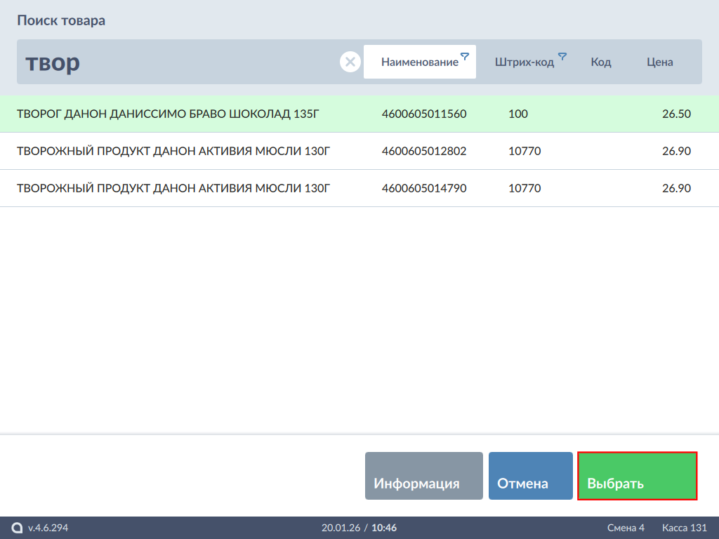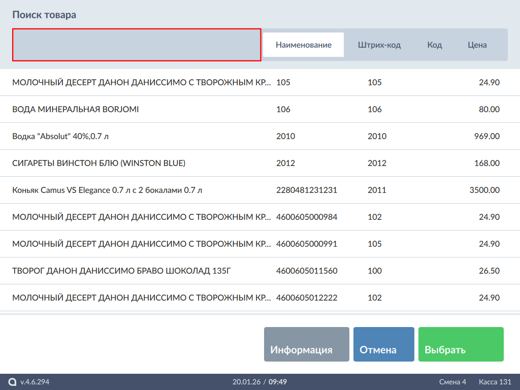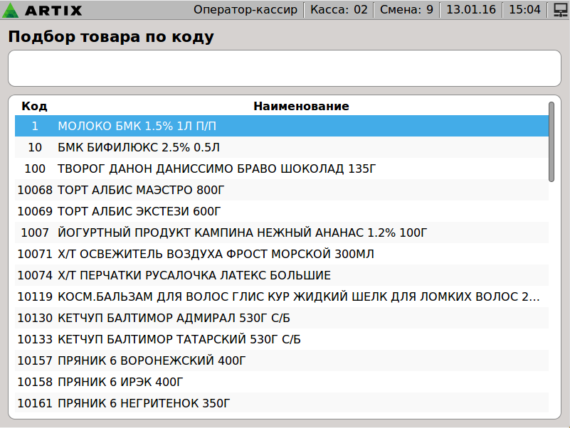 599 - Artix POS 5.0. Подбор по коду. Список.png