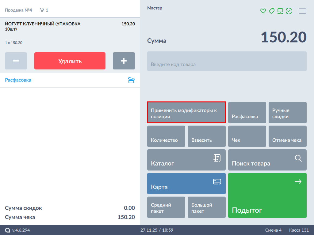 599 - Artix POS 5.0. Расфасовка товара. Товар в чеке. Кнопка + Рамка.png