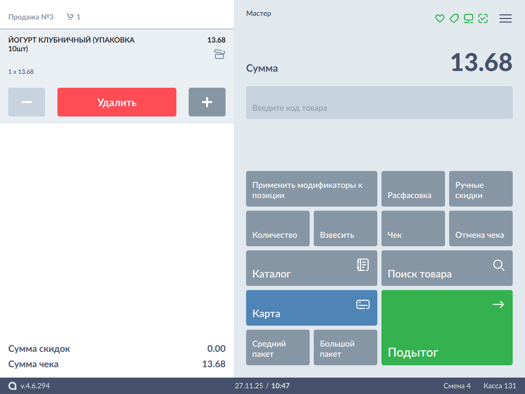 599 - Artix POS 5.0. Расфасовка товара. Товар в чеке.png
