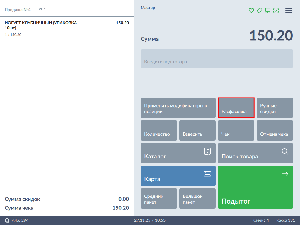 599 - Artix POS 5.0. Расфасовка товара. Товар в чеке и расфасовка. Расфасовано + Рамка.png