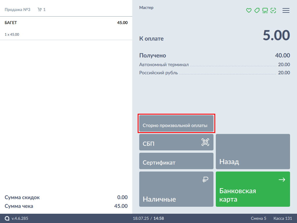 599 - Artix POS. Подытог. Меню сторно произвольной оплаты.png