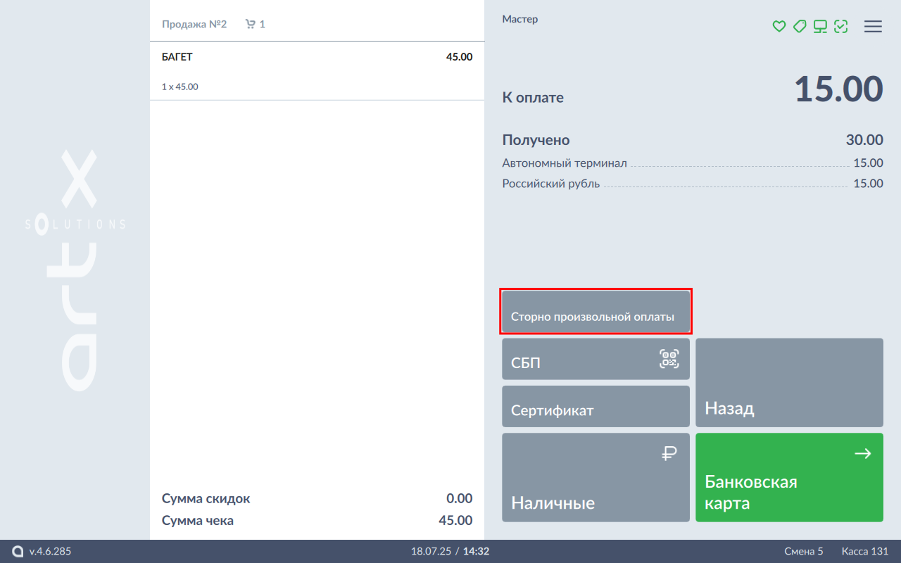 599 - Artix POS. Подытог. Кнопка сторно произвольной оплаты + Рамки.png