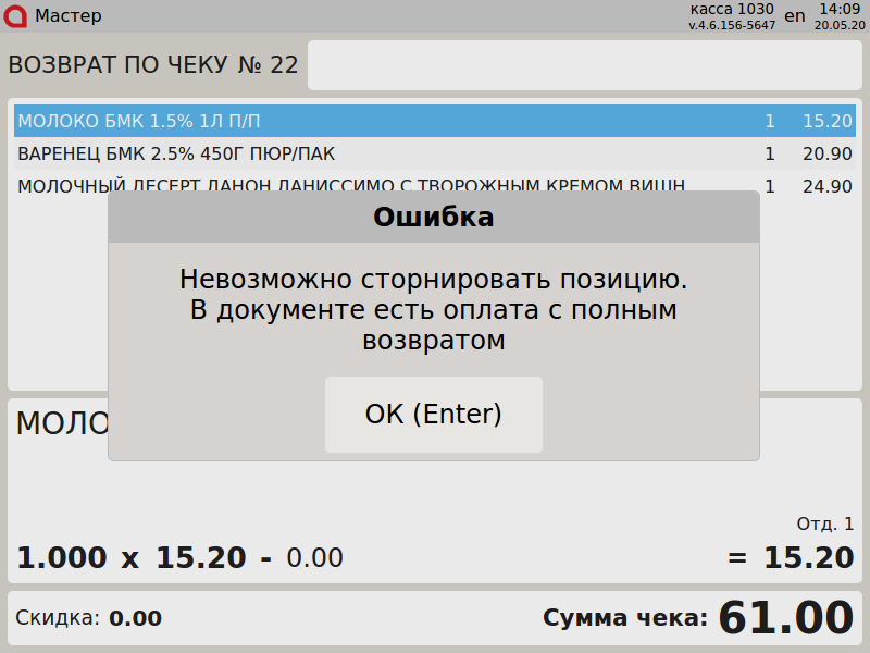 000 - Невозможно сторнировать позицию. В документе есть оплата с полным возвратом.png