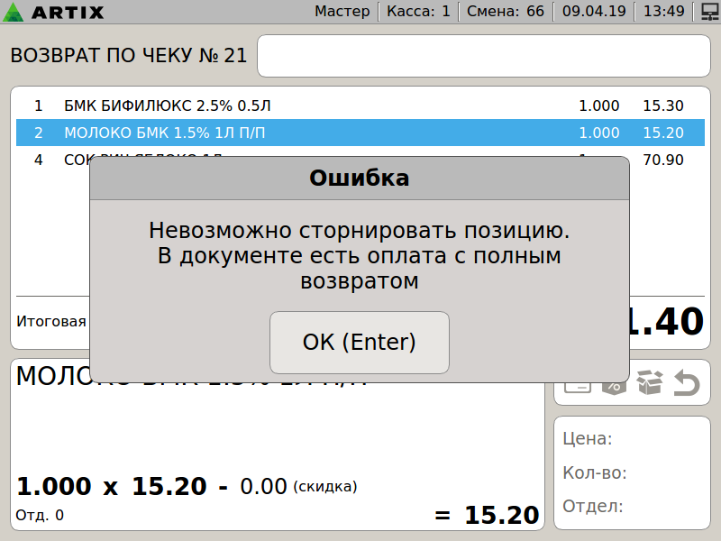 000 - Невозможно сторнировать позицию. В документе есть оплата с полным возвратом.png