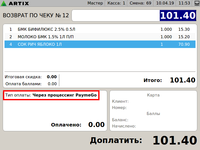 599 - PaymeGo. Отсканирован токен карты PaymeGo.png