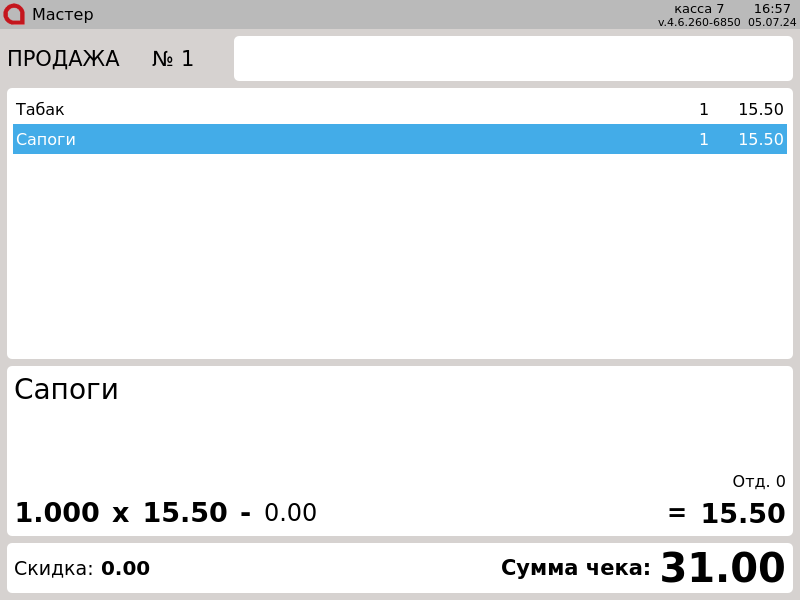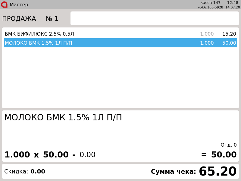 7 - Онлайн-чеки. Отсканированный товар выделен серым цветом в документе.png