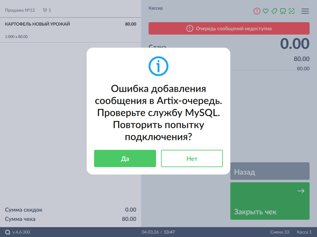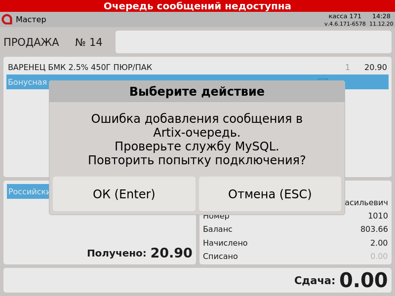 000 - Ошибка добавления сообщения в Artix-очередь. Проверьте службу MySQL. Повторить попытку подключения?.png