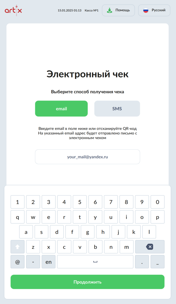 7 - Ввод адреса покупателя для отправки электронного чека. Ввод почты.png