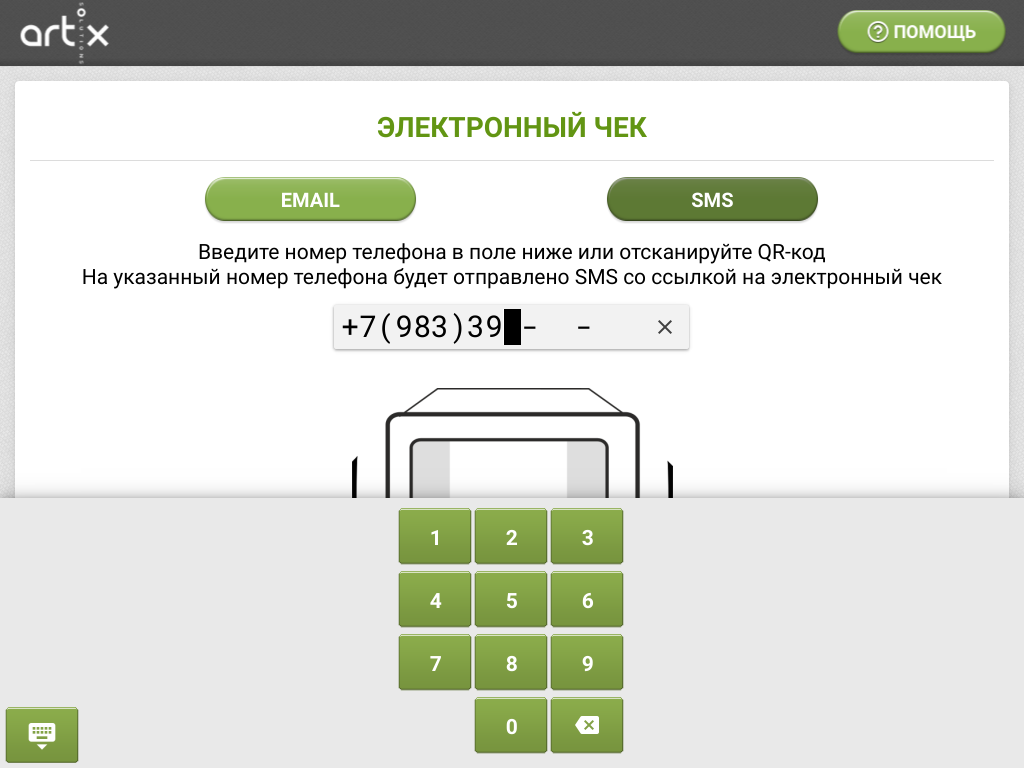 23-Новый интерфейс SCO.Ввод адреса покупателя для отправки электронного чека. Ручной ввод номера телефона.png