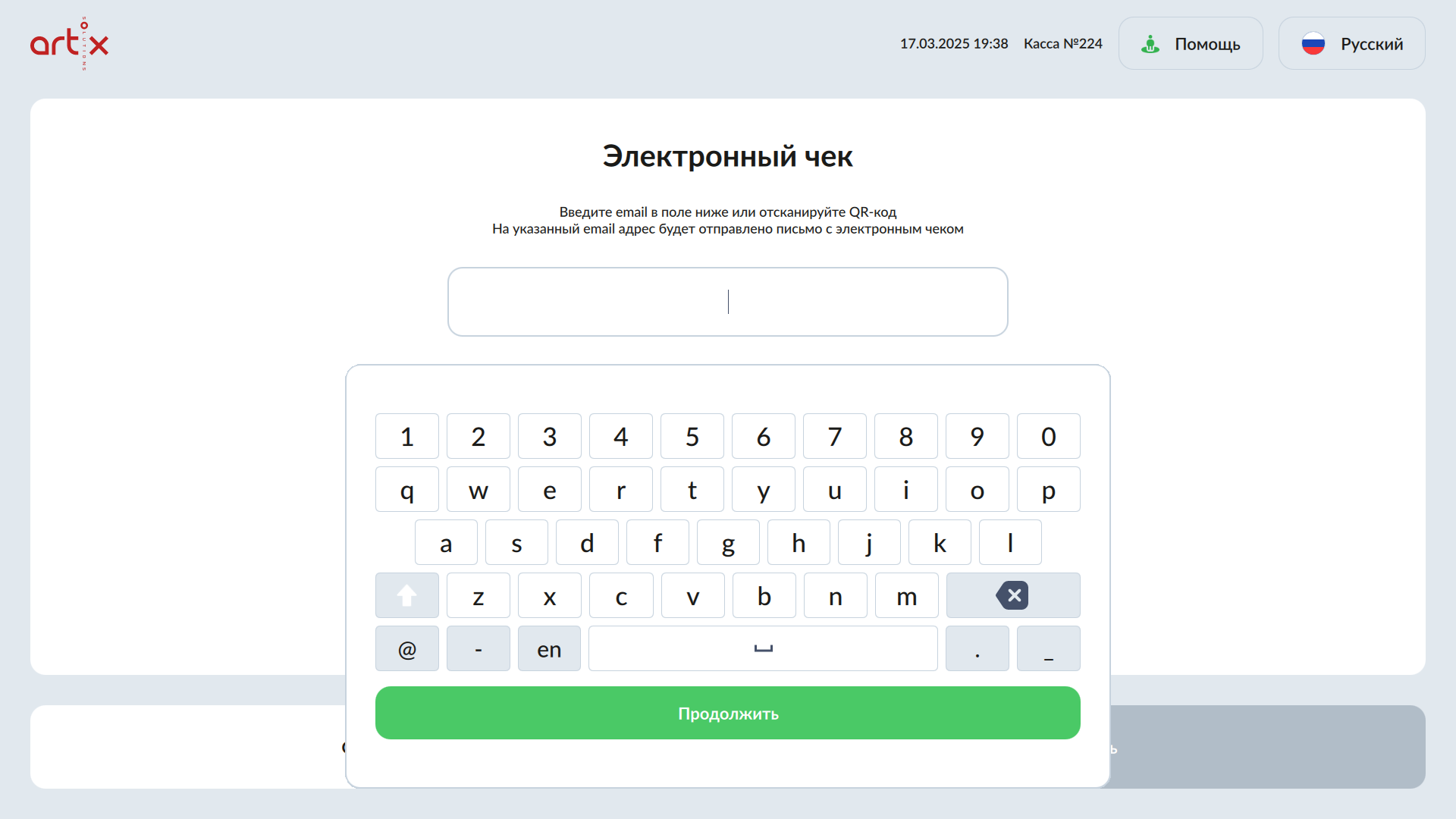 23-Новый интерфейс SCO.Ввод адреса покупателя для отправки электронного чека. Ввод почты..png