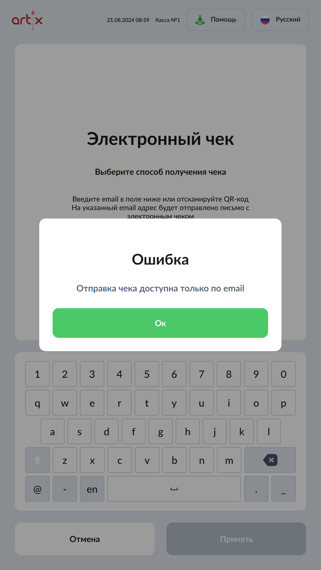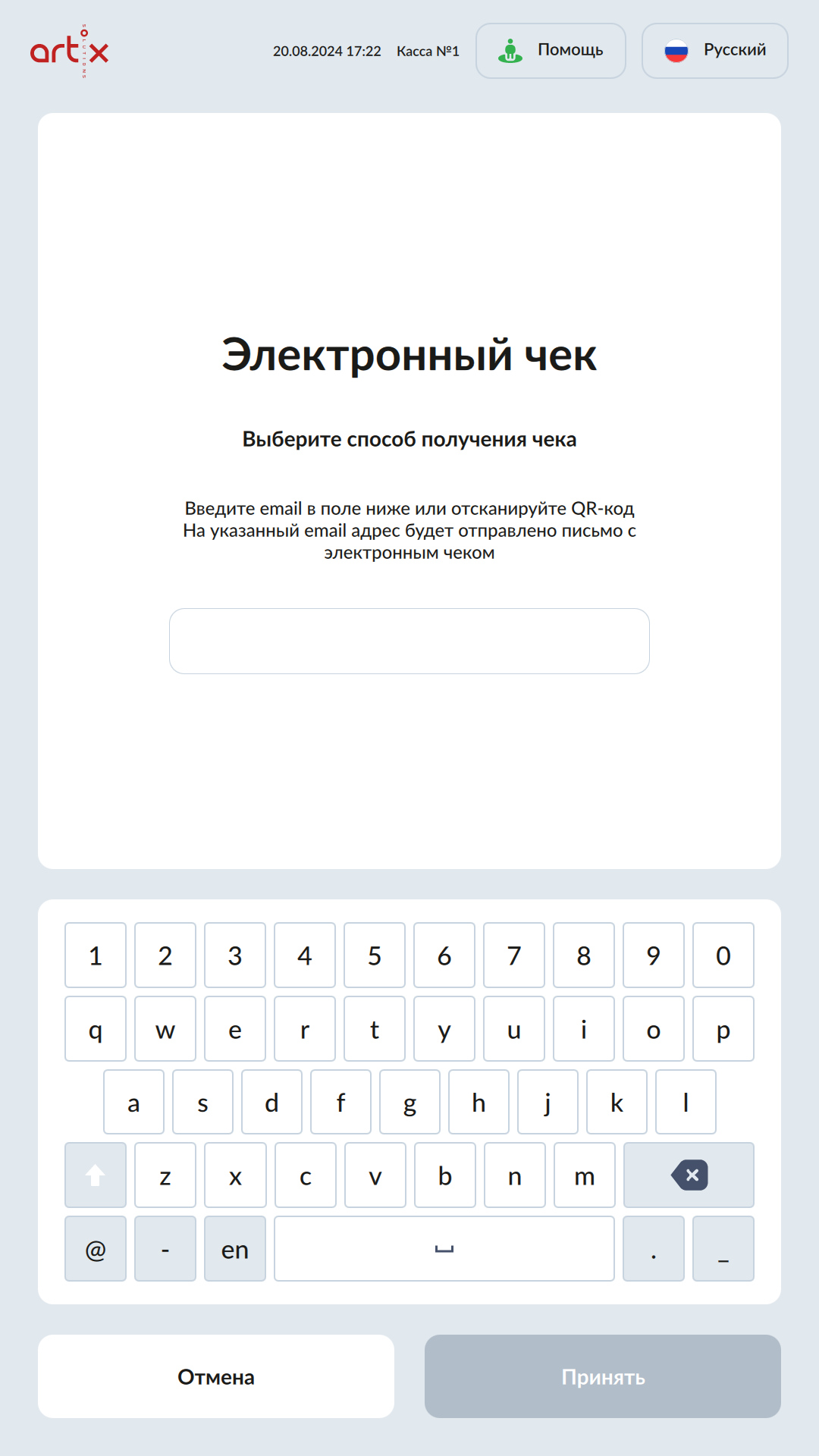 7 - Новый интерфейс SCO. Отправка чека на адрес покупателя. Введите email.png