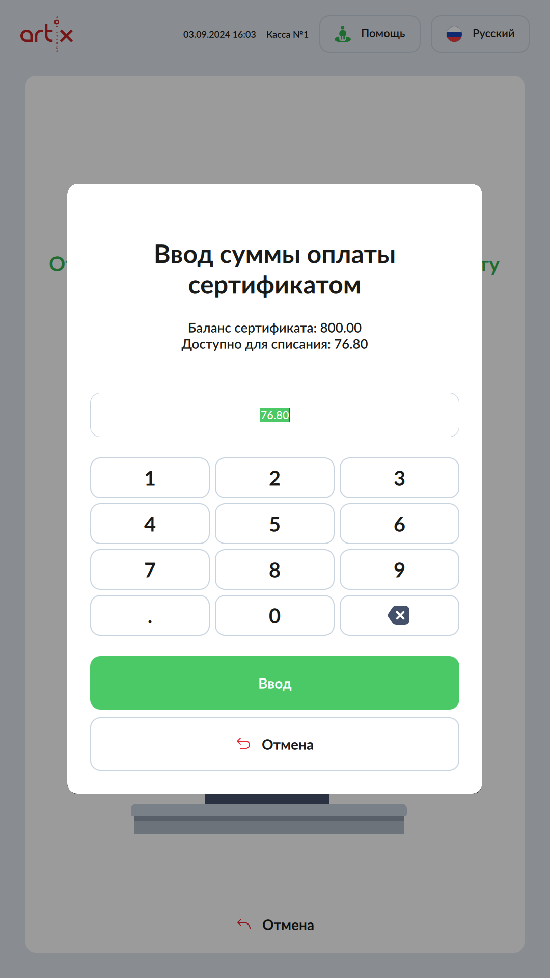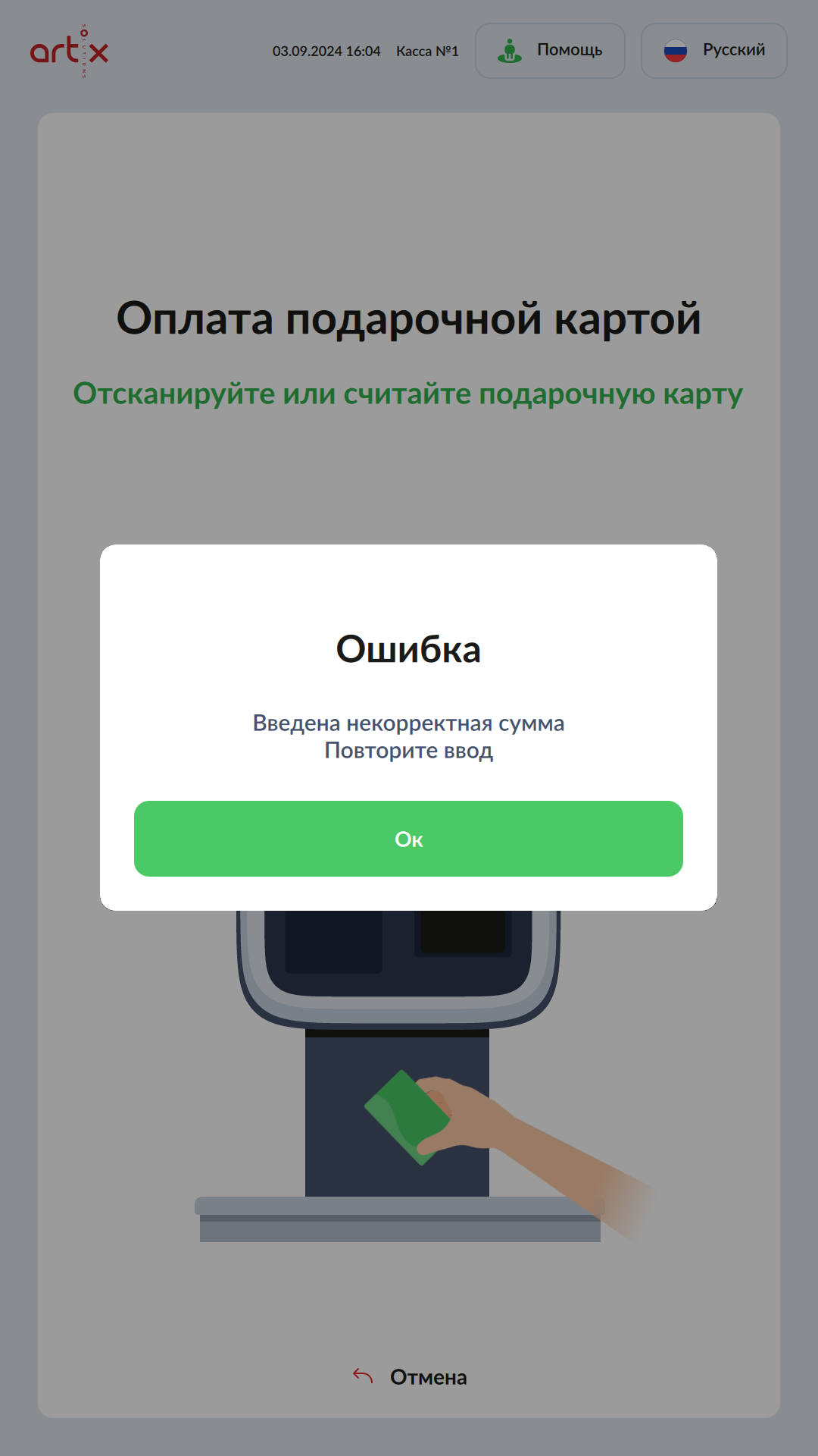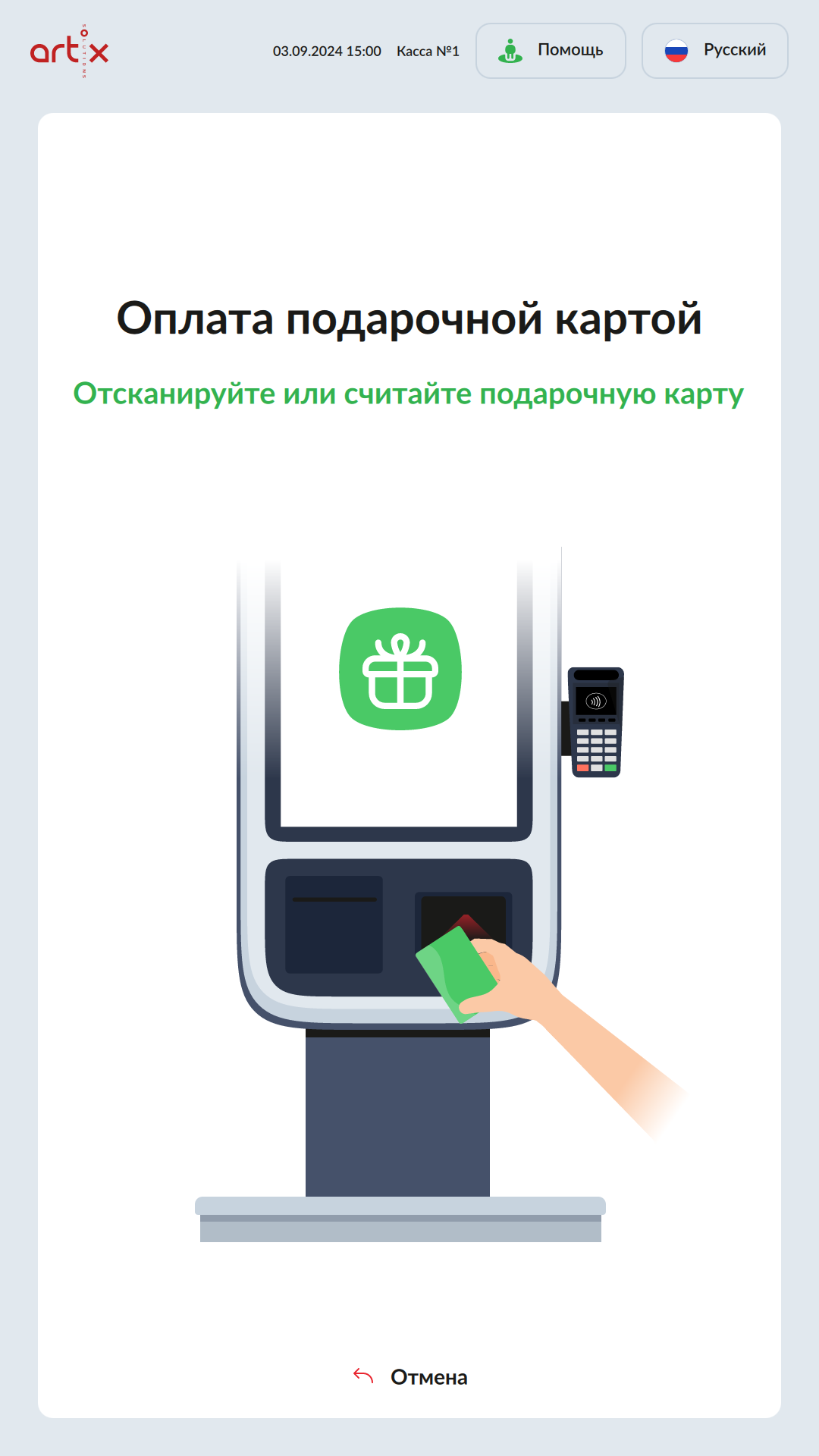 7 - Artix SCO. Новый интерфейс. Продажа товаров на КСО. Оплата подарочным сертификатом.png