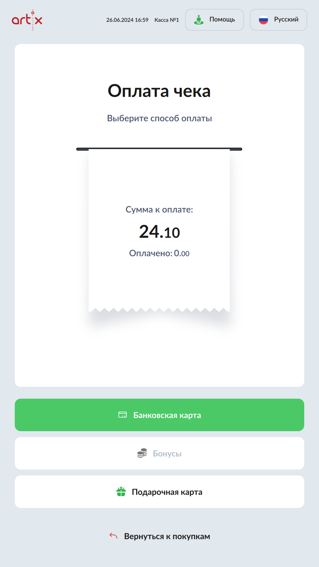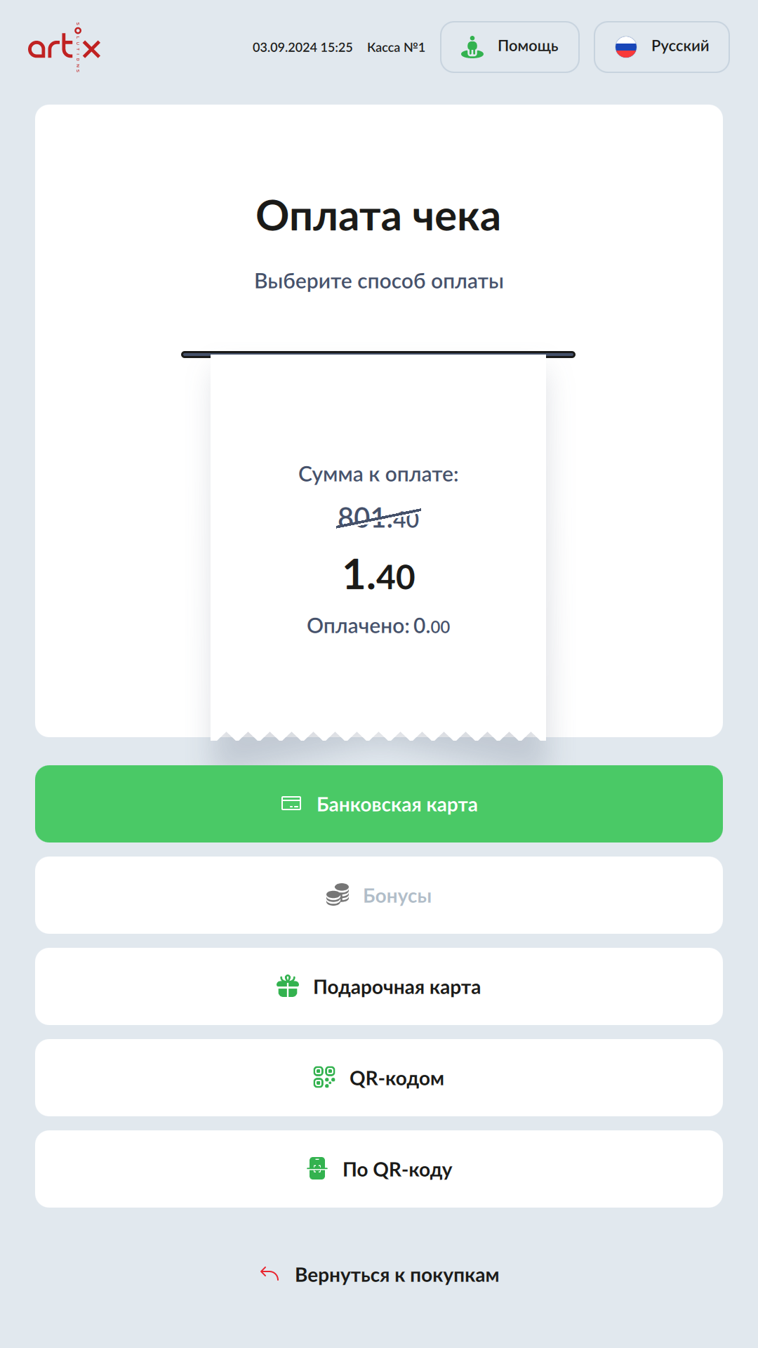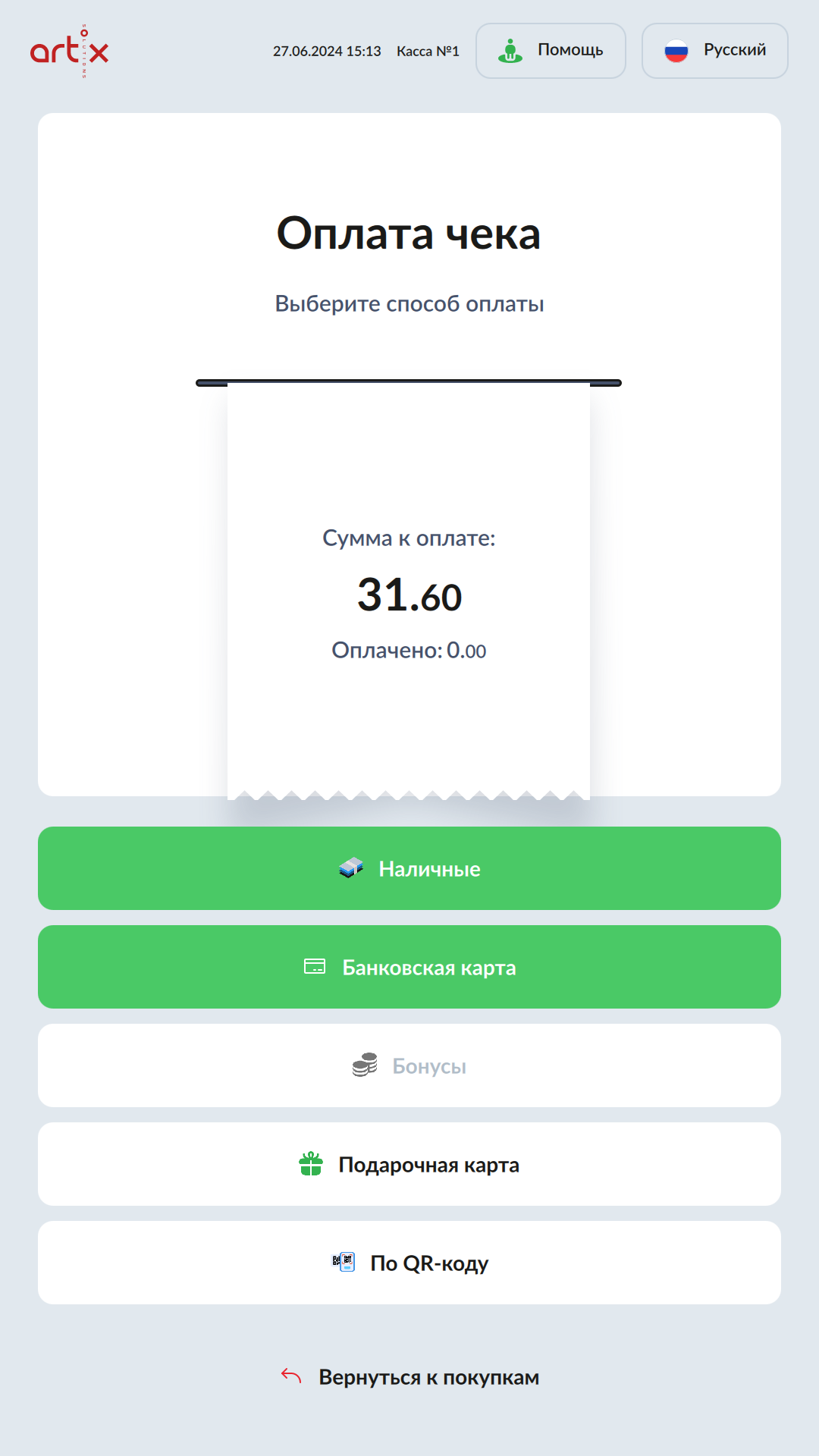 7 - Artix SCO. Новый интерфейс. Продажа товаров на КСО. Все доступные виды оплат.png