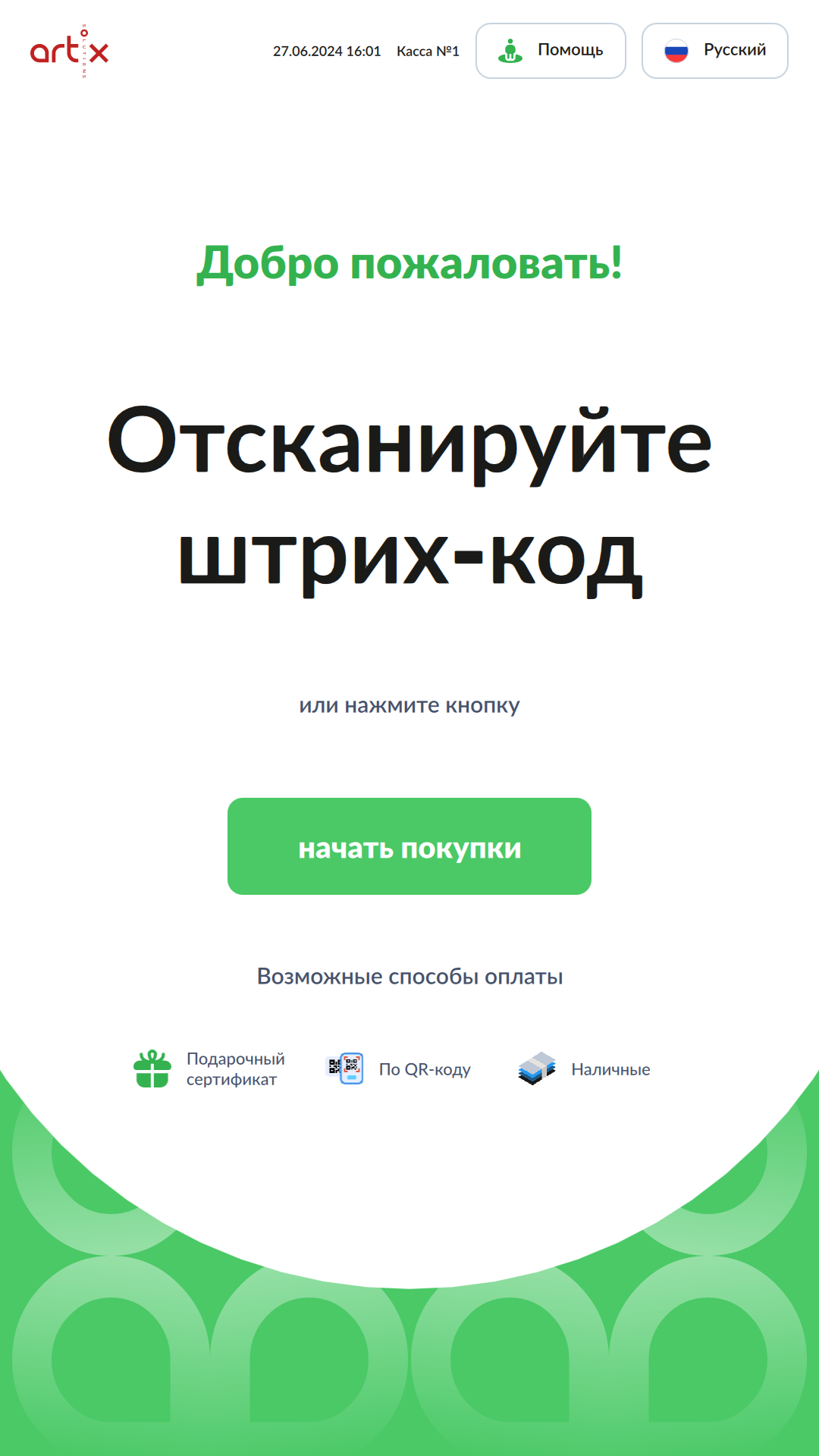 7 - Artix SCO. Новый интерфейс. Продажа товаров на КСО. Возможные способы оплаты в окне приветствия.png