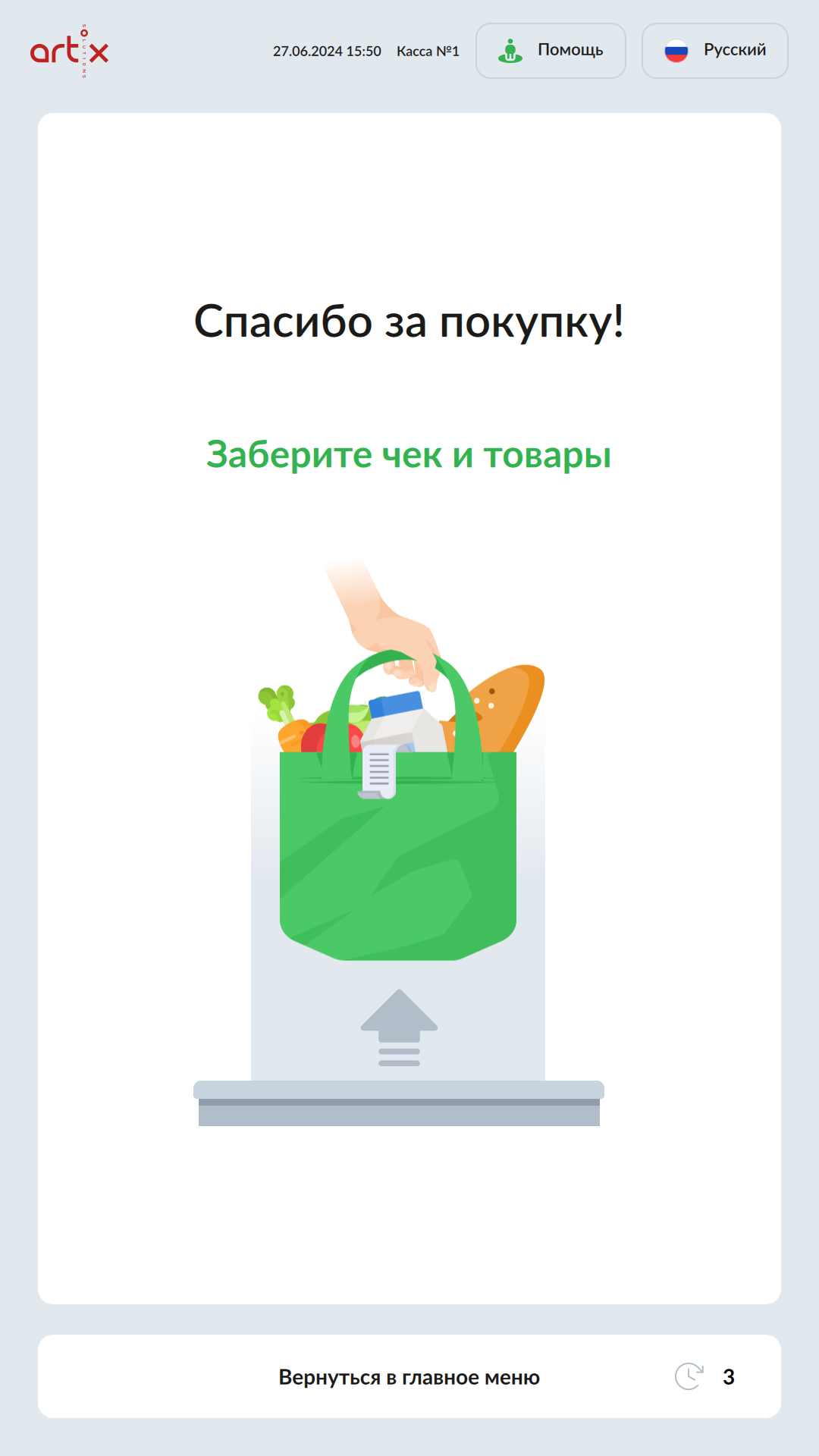 7 - Artix SCO. Новый интерфейс. Продажа товаров на КСО. Оплата прошла успешно. Заберите товары.png