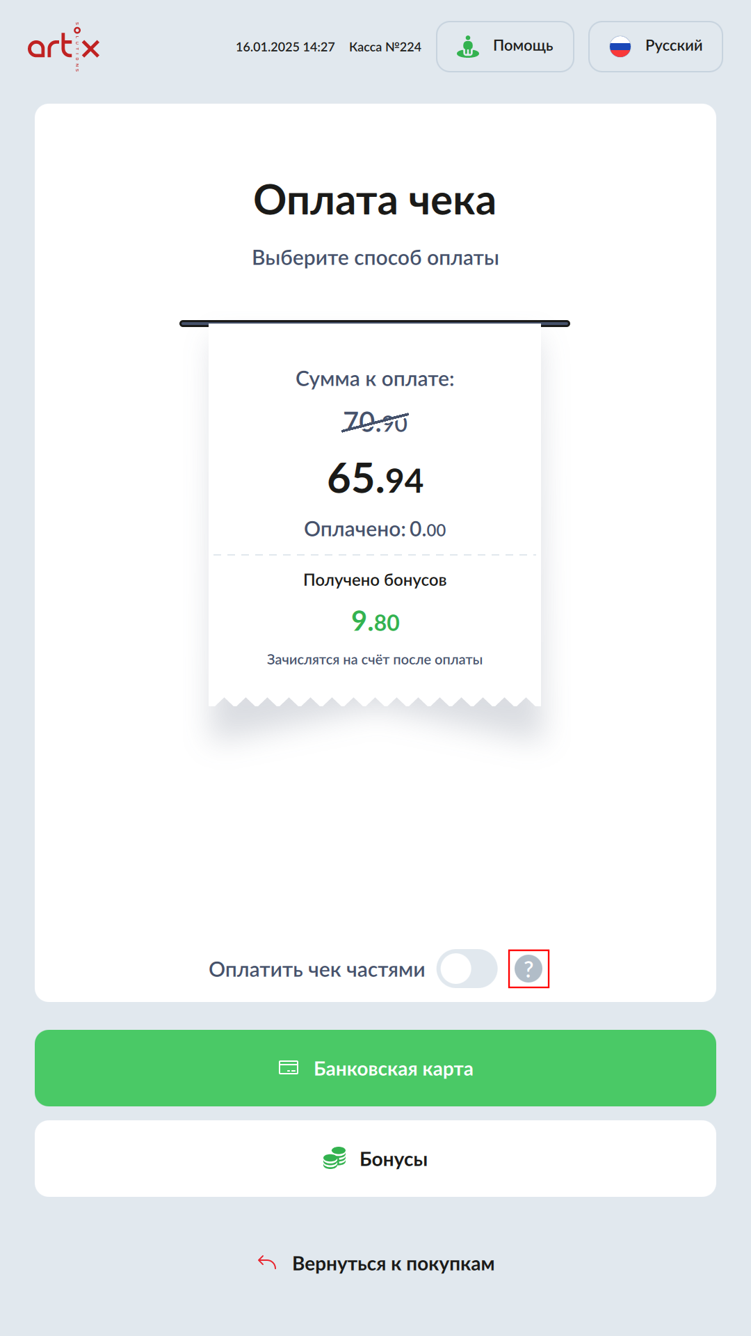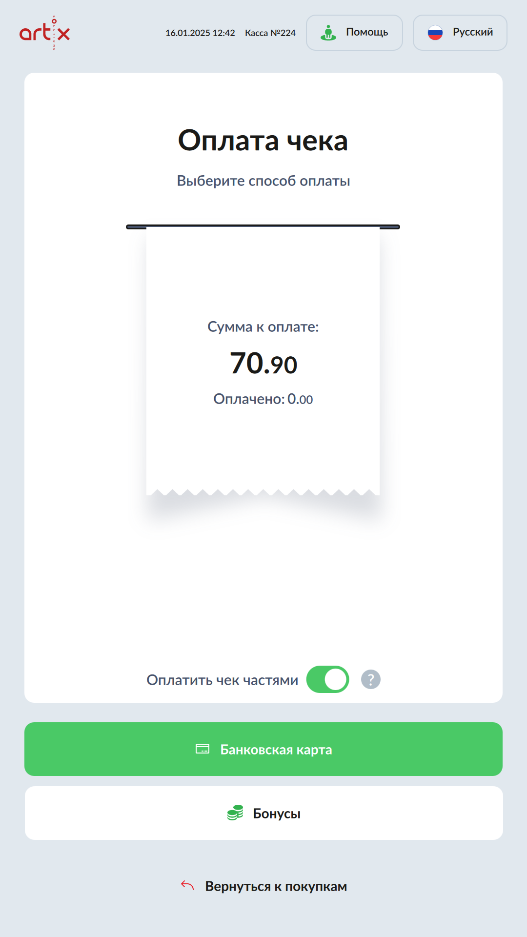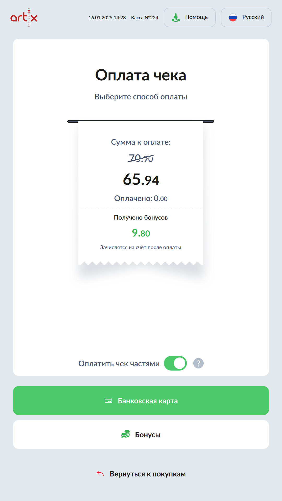 77 - Artix SCO. Новый интерфейс. Горизонтальный экран. Оплата чека частями.png