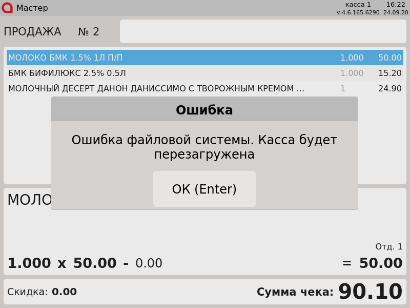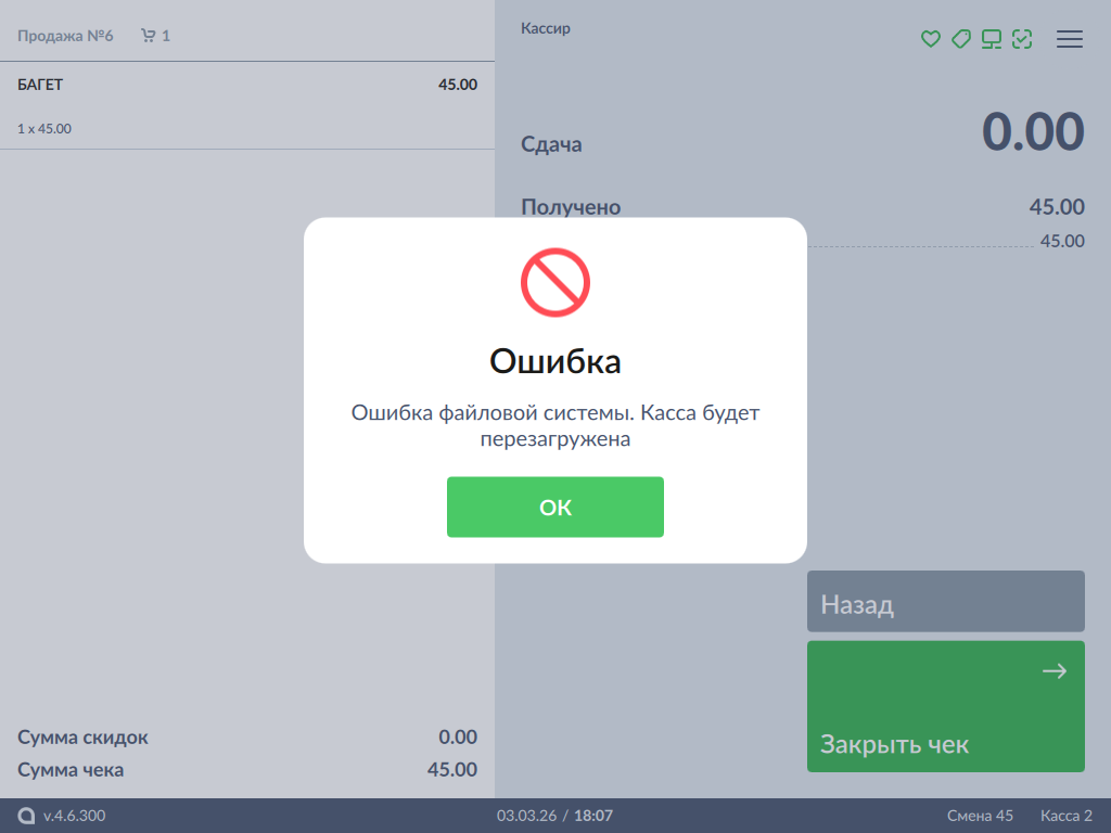 18 - Ошибки при работе на кассе. Ошибка файловой системы. Касса будет перезагружена.png