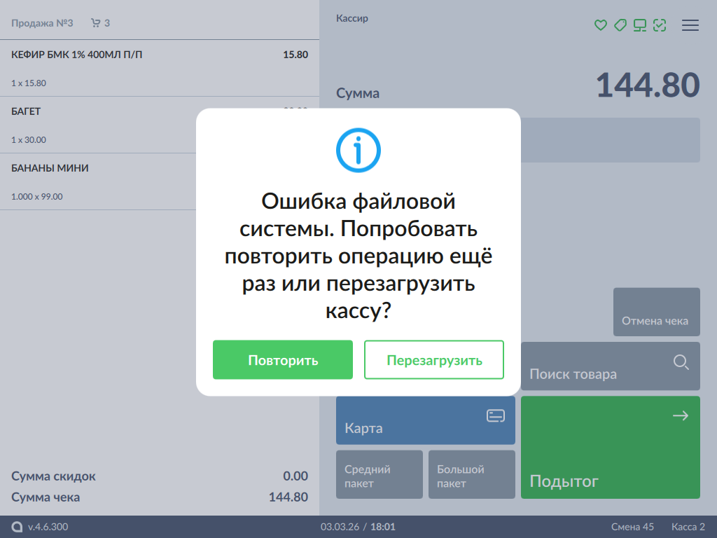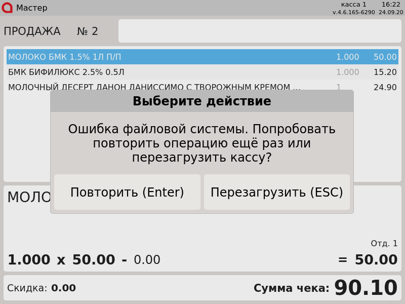 000 - Ошибка файловой системы. Попробовать повторить операцию ещё раз или перезагрузить кассу?, Повторить, Перезагрузить.png