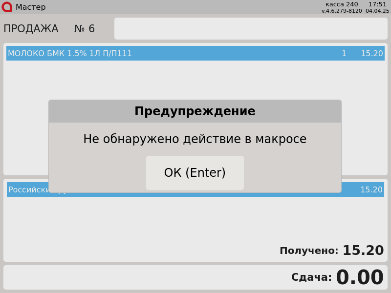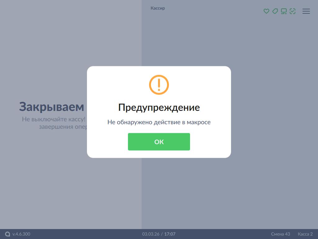 18 - Ошибки при работе на кассе. Не обнаружено действие в макросе.png