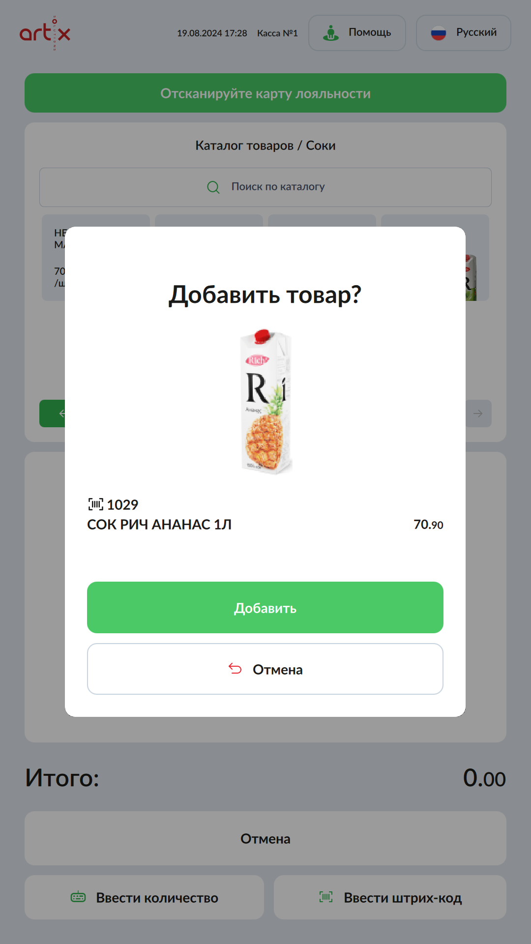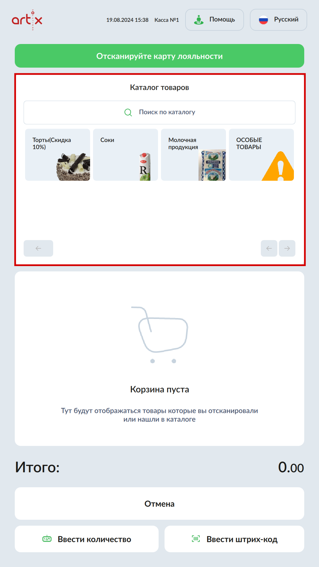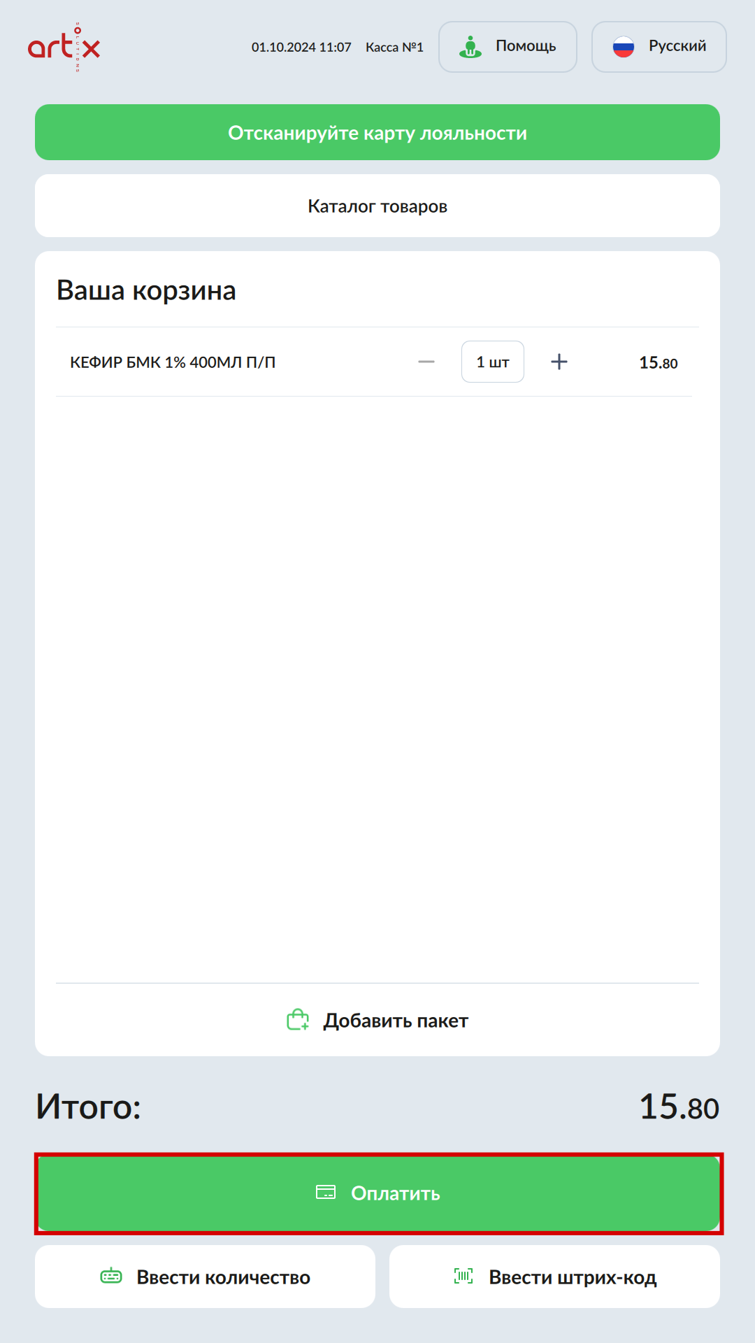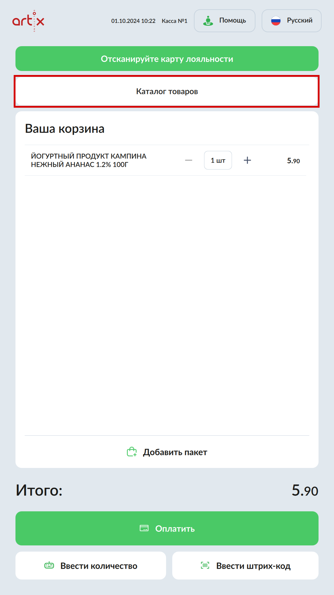 7 - Artix SCO. Новый интерфейс. Продажа товаров на КСО. Добавление товара в чек.png