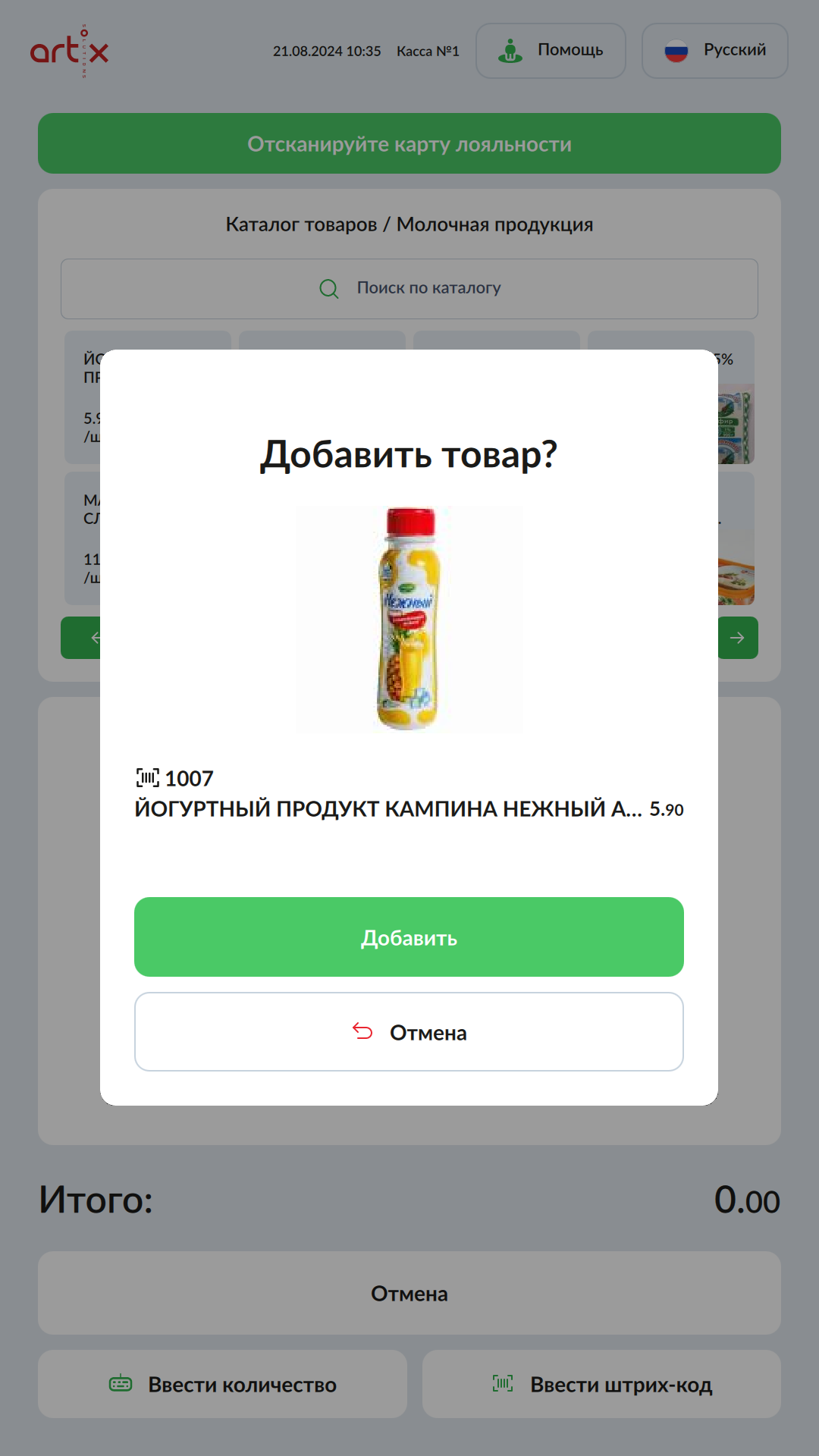 7 - Artix SCO. Новый интерфейс. Использование каталога товаров. Добавить товар в чек?.png
