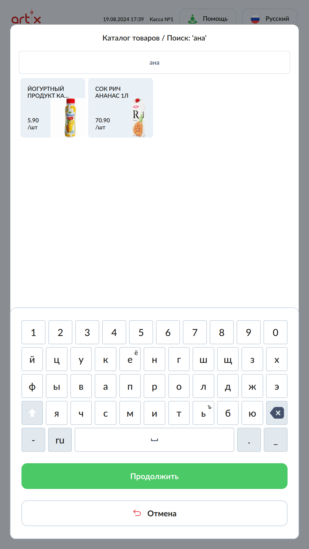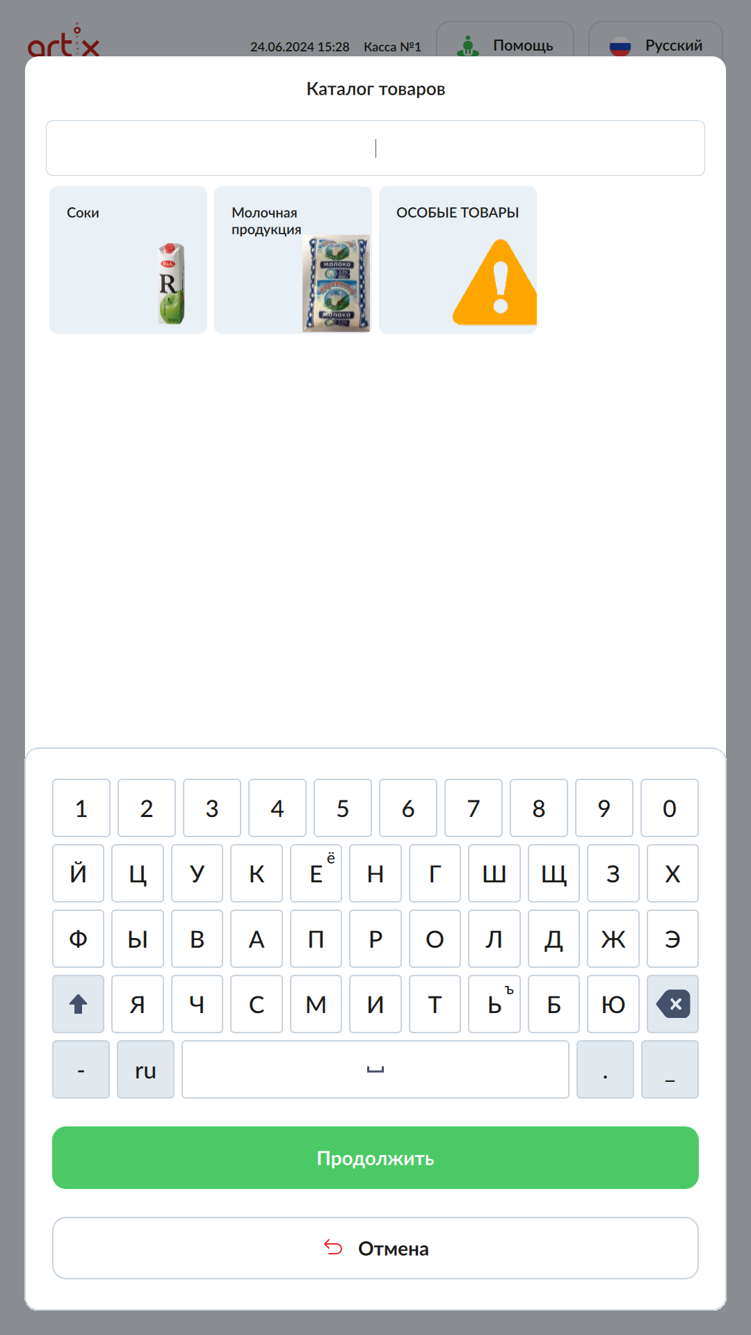 7 - Artix SCO. Новый интерфейс. Продажа товаров на КСО. Каталог товаров. Поиск по наименованию.png