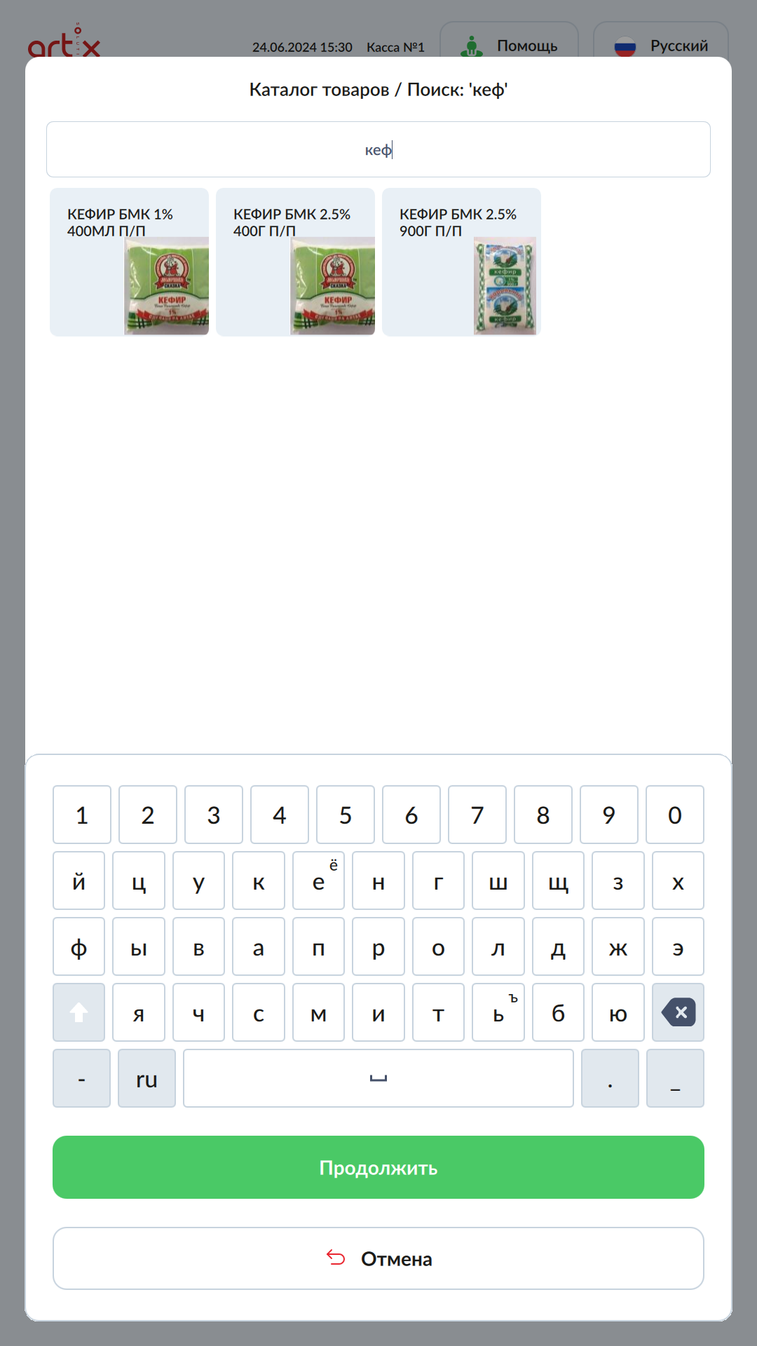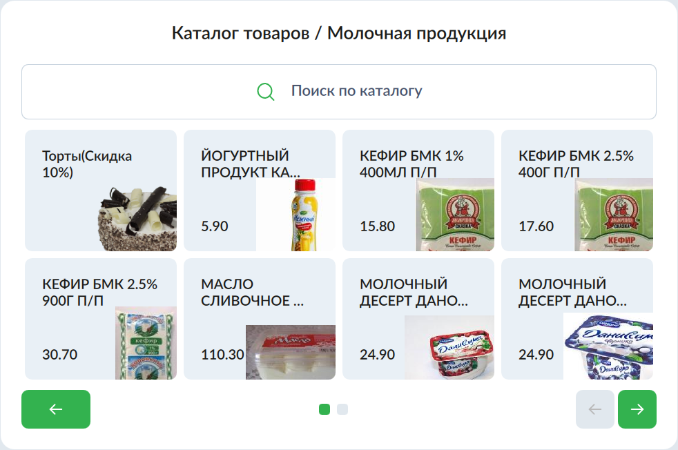 7 - Artix SCO. Новый интерфейс. Продажа товаров на КСО. Каталог товаров. Молочная продукция.png