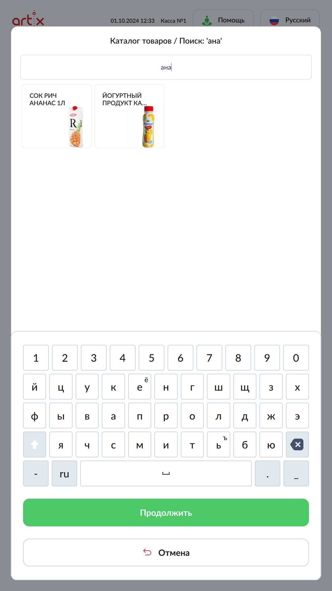 7 - Artix SCO. Новый интерфейс. Продажа товаров на КСО. Каталог товаров. Поиск по наименованию.png