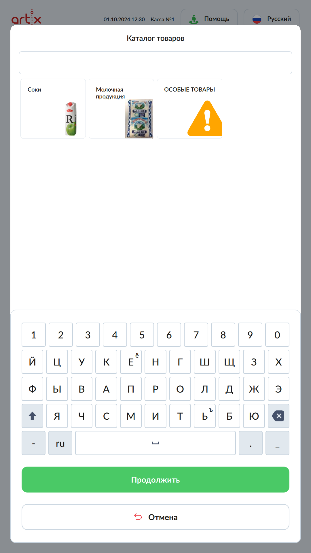 7 - Artix SCO. Новый интерфейс. Использование каталога товаров. Полноразмерный режим+клавиатура.png