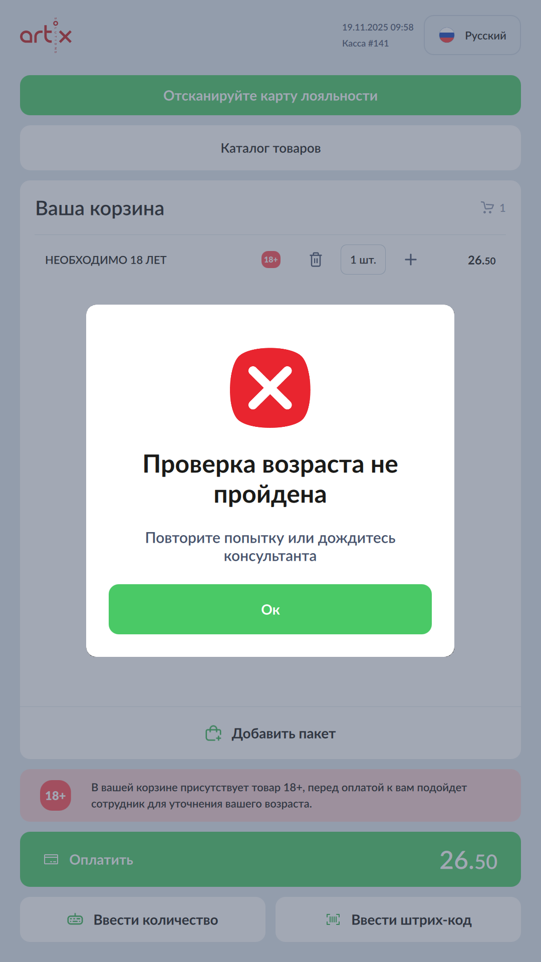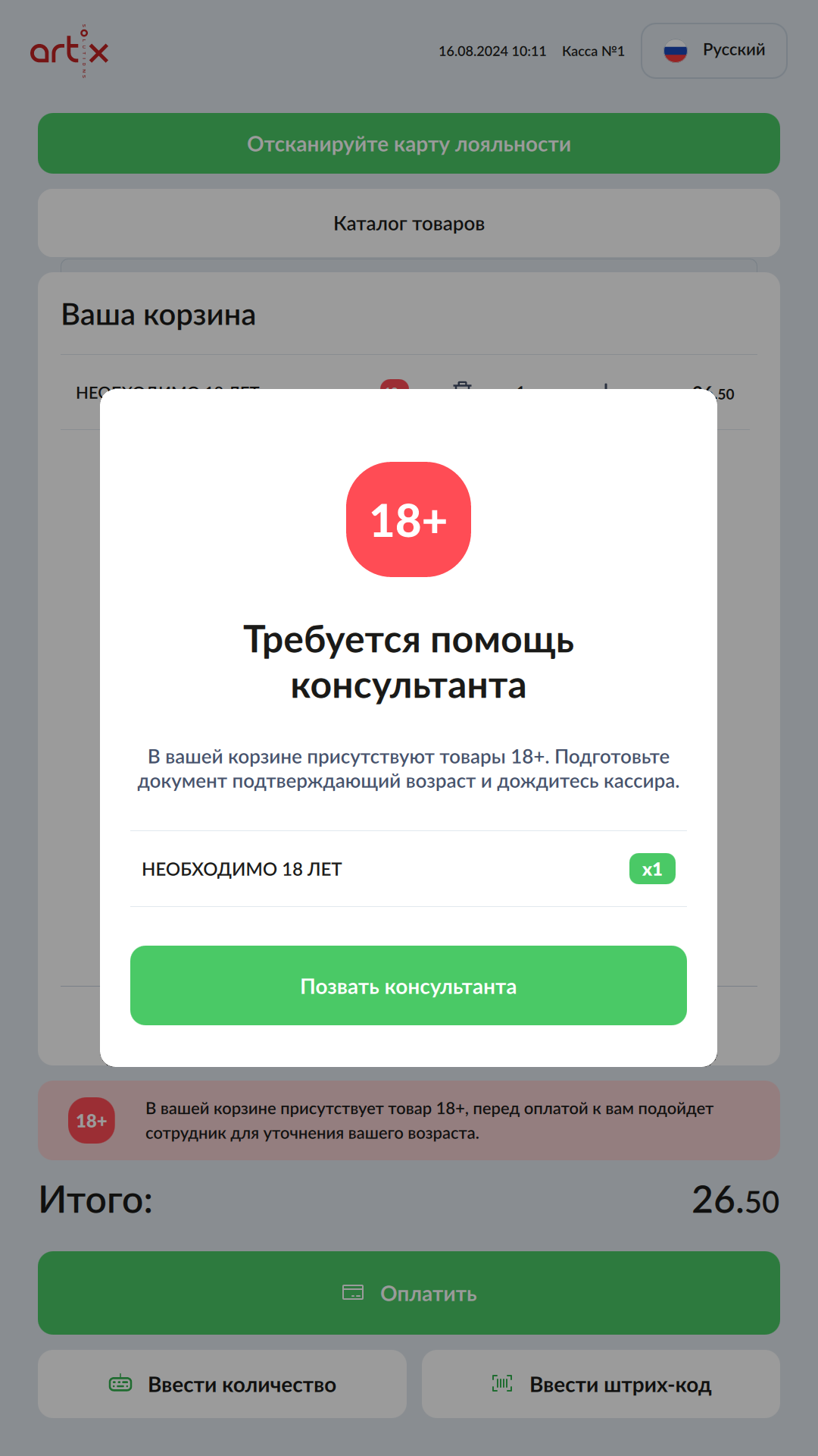 77 - Artix SCO. Новый интерфейс. Горизонтальный экран. В корзине товар 18+.png