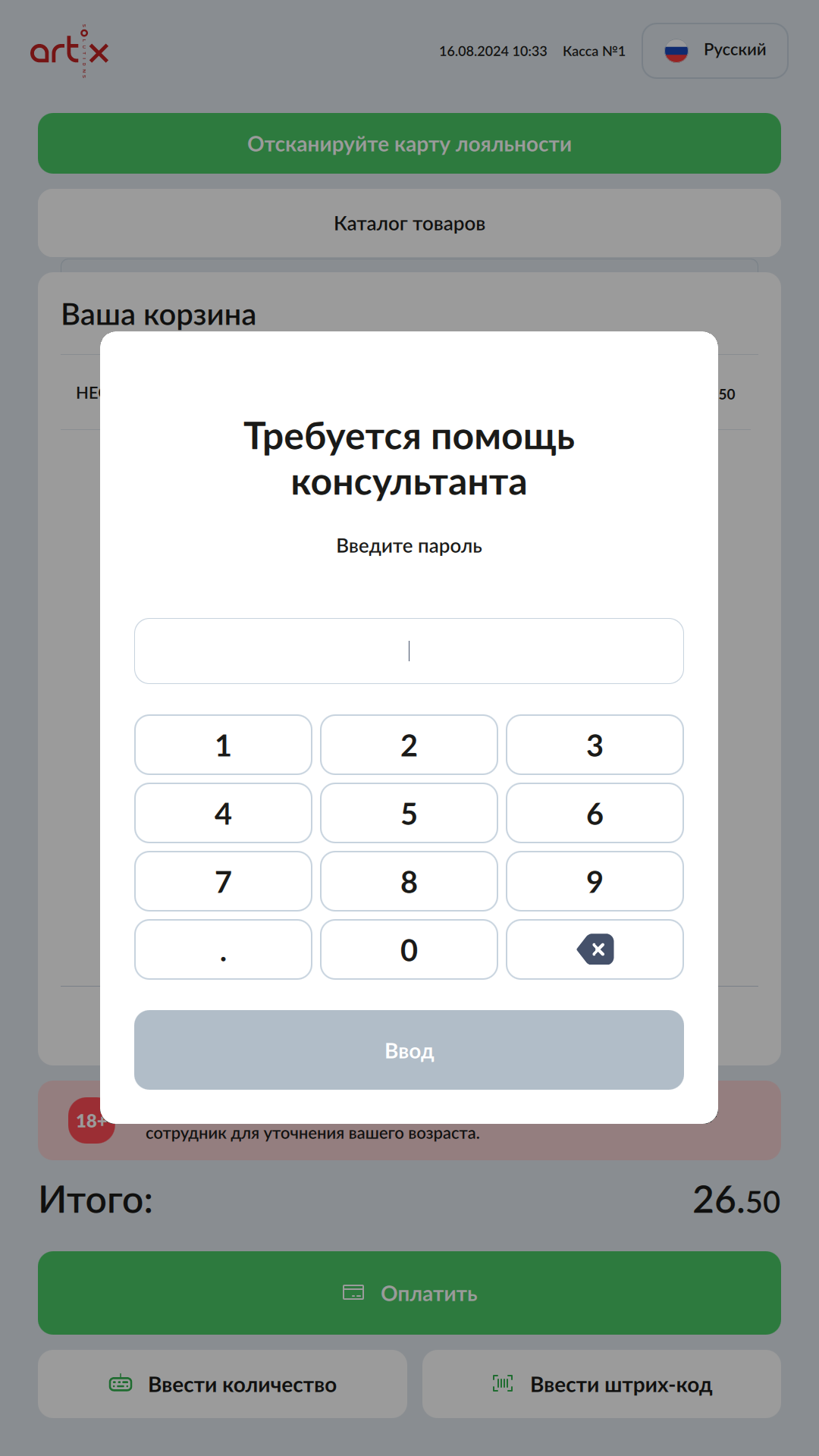 7 - Проверки при добавлении товаров с ограничениями. Требуется помощь консультанта. Введите пароль.png