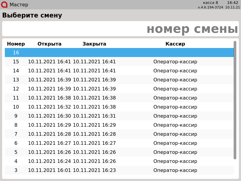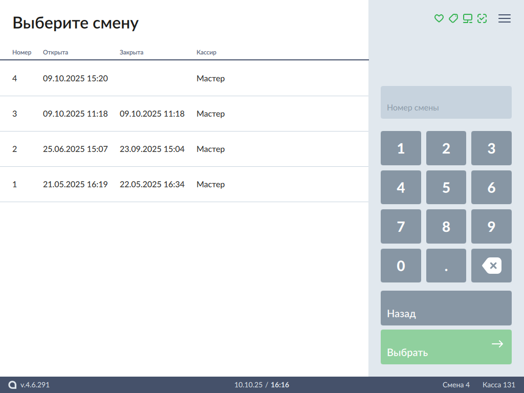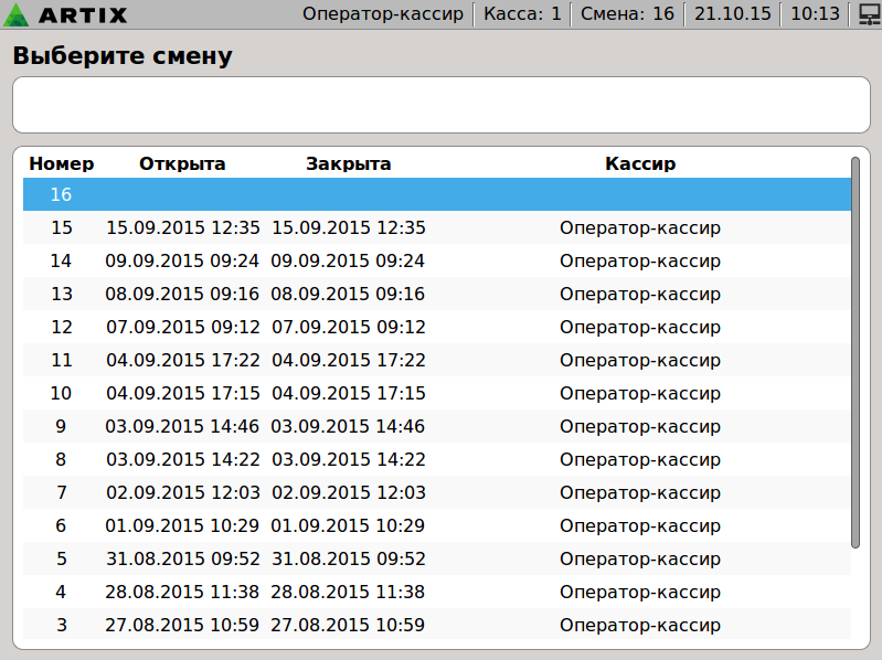 599 - Artix POS 5.0. Отчеты за смену. Отчет. Выбор смены + Рамки.png
