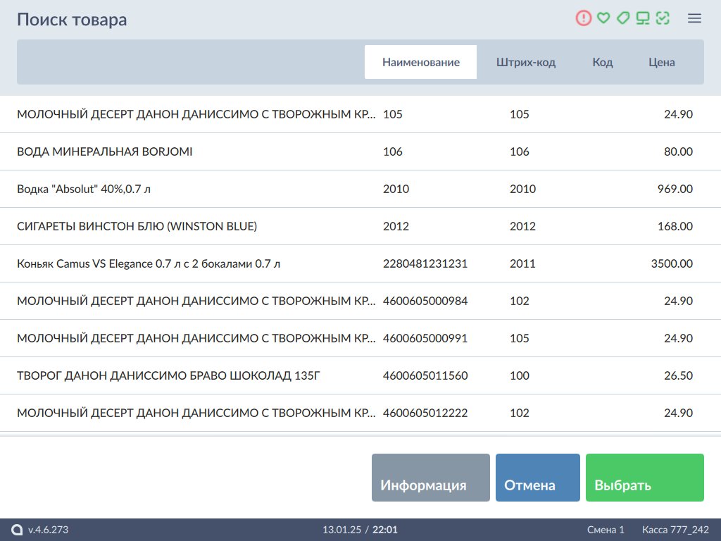 Работа с интерфейсом Artix POS 5