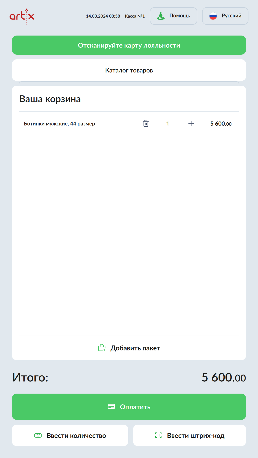7 - Artix SCO. Новый интерфейс. Продажа обувных товаров. Отсканируйте КМ товара.png