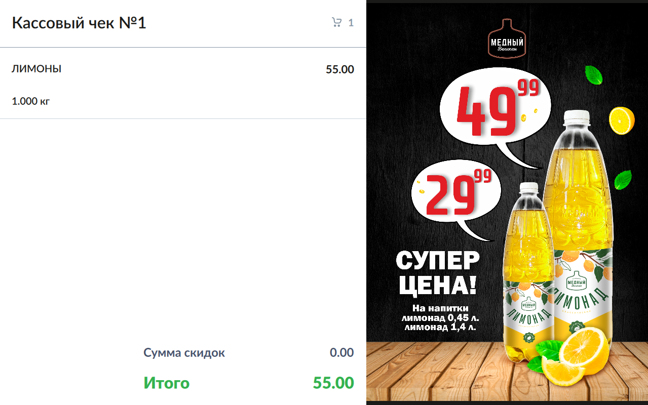 599 - Artix POS 5.0. Вывод пользовательской информации на второй монитор. Отображение чека с рекламой.png